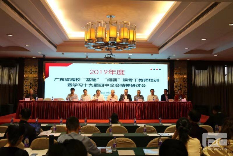 培训主要内容为深入学习中国共产党第十九届四中全会精神。开班上午分别由广东警官学院教授杨经录和广东外语外贸大学马克思主义学院谢迪斌教授就“深入学习‘社会主义的中国方案’,推进中国特色社会主义制度健康发展——十九届四中全会精神解读”,“新时代高校思政课的制度逻辑与治理路径”两个题目进行了精彩解读。与会教师普遍反映对十九届四中全会《决定》的出台背景、内容和作用有了清晰理解,并且对高校思政课制度建设有了初步认识。下午培训针对“纲要”课程的科研和教学分别由詹小美教授和陈金龙教授作了“坚定理想信念 提高科研能力”和“新中国70年的历史与评价”讲座,两位教授通过典型案例深入浅出,以高度概括性语言将科研课题申报和建国后历史在大学课堂上如何讲授进行了精辟分析和概括。