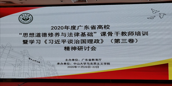 2020年11月20日之22日,骨干教师培训与精神研讨会在广州三寓宾馆举行。我校马克思主义学院刘亚军与张贝老师参加了此次会议。