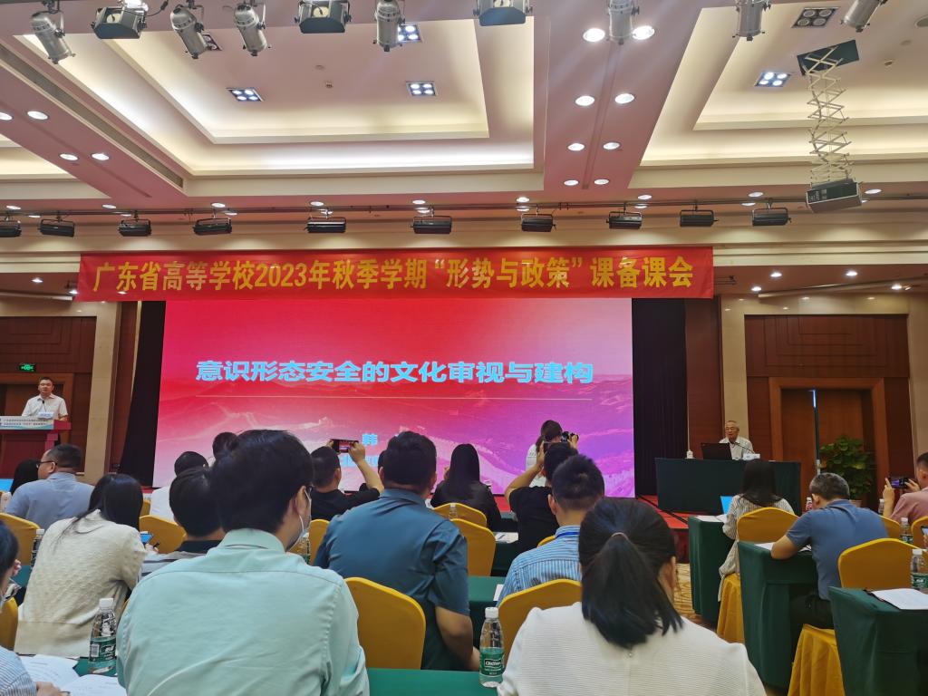 2023年10月29日,由广东省教育厅主办,华南师范大学马克思主义学院承办的广东省高校2023年秋季学期“形势与政策”课备课会在广州珠江宾馆会议中心召开。我校马克思主义学院副院长吴素香教授携邢立宇老师参加了会议。