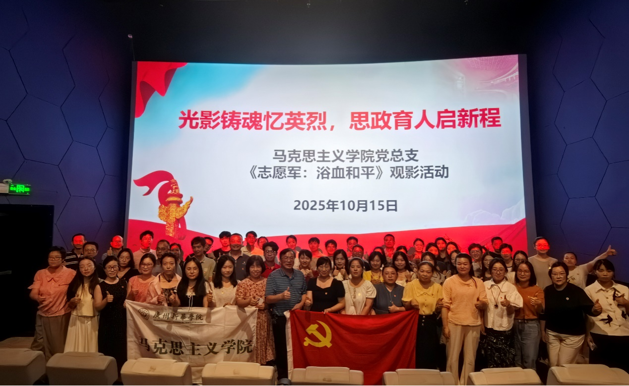 为深入学习贯彻习近平新时代中国特色社会主义思想,庆祝中华人民共和国成立76周年,推动党史学习教育常态化长效化,10月15日下午,马克思主义学院党总支组织全体教师开展“光影铸魂忆英烈·思政育人启新程”主题党日活动,集中观看爱国主义教育影片《志愿军:浴血和平》,并举办专题学习研讨会。