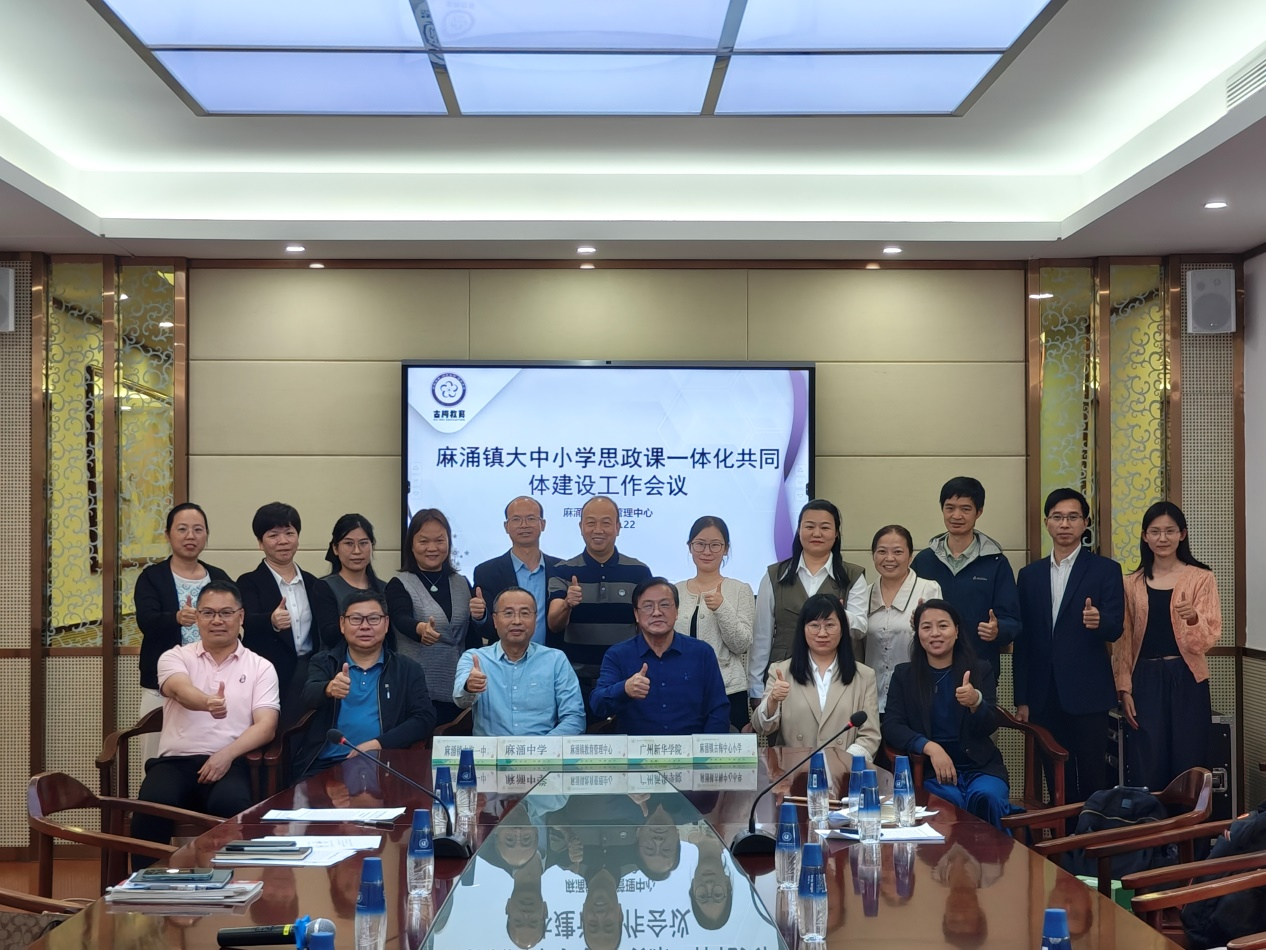 2025年10月22日下午,在麻涌镇教育管理中心的推动下,麻涌镇大中小学思政课一体化共同体建设研讨会在古梅一中召开。会议旨在深入贯彻落实中共中央办公厅、国务院办公厅印发的《关于进一步推进大中小学思政课一体化建设的若干措施》要求,推进由广州新华学院马克思主义学院牵头,麻涌中学、古梅一中、古梅中心小学共同参与的“东莞市大中小学思政课一体化共同体”项目。会议由麻涌镇教育管理中心分管思政教学的麦志广主任主持。各共建单位分管教学副校长、思政课教研组长,我院付晶书记、卢诚副院长与教研室主任共同参会。