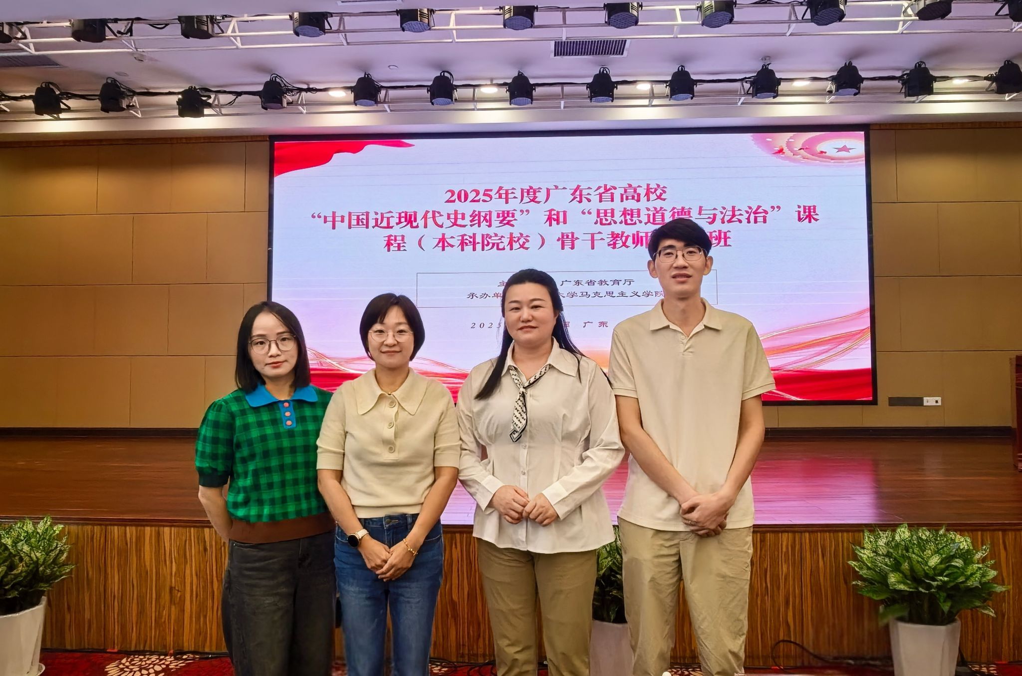 11月9日,由广东省教育厅主办、中山大学马克思主义学院承办的2025年广东省高校“中国近现代史纲要”与“思想道德与法治”课程(本科院校)骨干教师培训顺利举办。我院教师张改萍、莫楠、彭柳、杨海青参加此次研修。