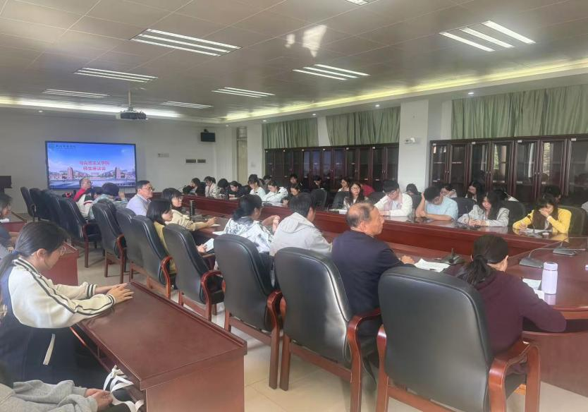 2025年11月26日下午,马克思主义学院在格物楼2B301会议室召开2025学年第一学期期中教学检查全校师生座谈会。马克思主义学院党总支书记付晶、副院长卢诚、各教研室主任和全校24级、25级57名学生代表参加会议,会议由副院长卢诚主持。