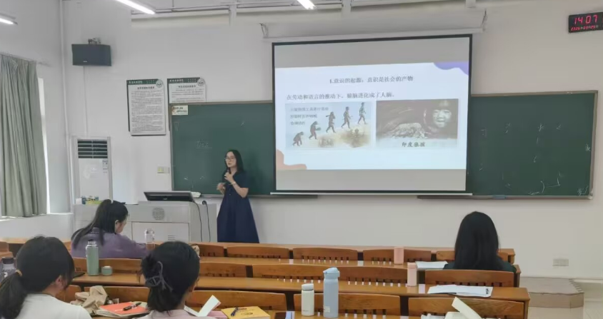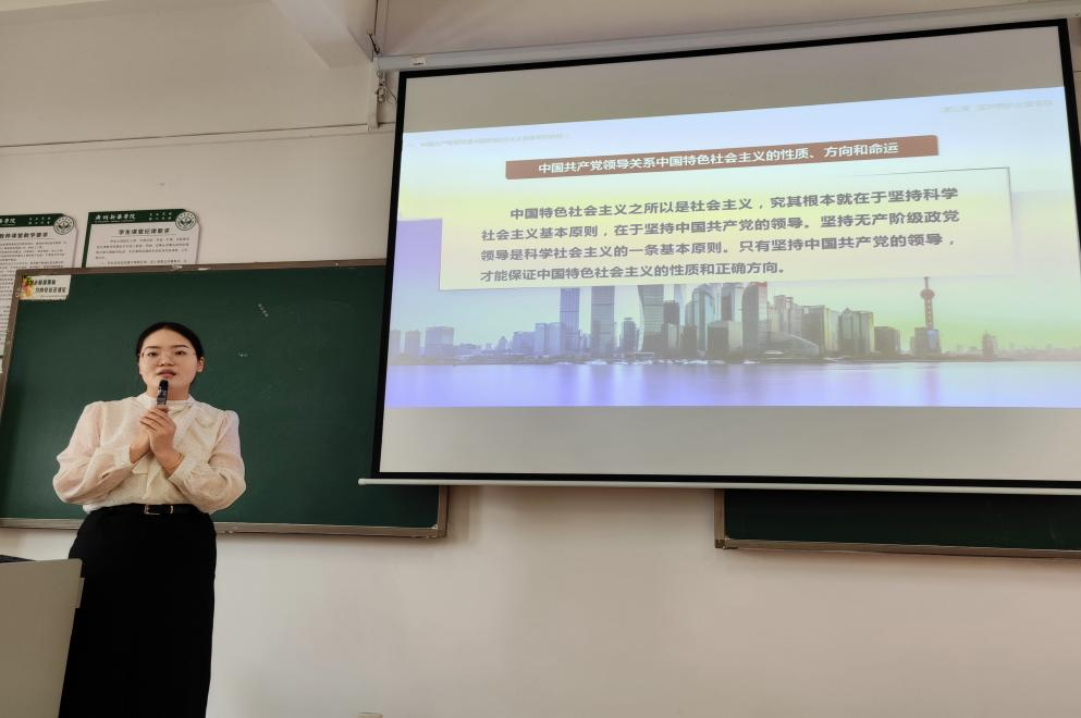 在教学展示环节,各教研室教师精心准备,呈现了各具特色的教学片段。马克思主义基本原理教研室的莫楠、宇晴两位老师围绕“意识的本质”及“人工智能与人类意识”等哲学议题展开教学,逻辑清晰,展现了扎实的理论功底。习近平新时代中国特色社会主义思想概论教研室的李欣欣、胡礼梦、玉日欣三位青年教师,虽从教时间不长,但教学技能日趋成熟,分别就“党的领导是中国特色社会主义最本质的特征”、“新时代坚持和发展中国特色社会主义”、“全面深化改革开放”等主题进行了富有感染力的讲授。毛泽东思想和中国特色社会主义理论体系概论教研室的李凤如、黎璇两位转岗教师,以“毛泽东思想活的灵魂”和“毛泽东思想的历史地位”为题,展现了良好的教学潜力和认真的备课态度。国防教育教研室的刘钊老师则带来了一堂高质量的示范课,他紧扣国家安全专题,结合最新时事,对军事、科技、文化、社会等安全领域的内涵进行了系统而生动的阐释。