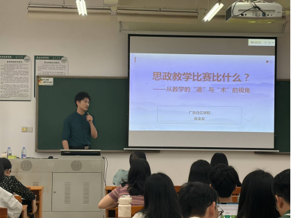 本次讲座由广东白云学院纲要教研室主任、暨南大学访问学者、广东省思政课名师工作室成员张龙龙教授主讲。近年来,张龙龙教授在教学竞赛领域成绩突出,先后在省青教赛、省思政课教师教学基本功比赛及粤桂琼赣滇五省联赛等多项赛事中获奖,具有丰富的教学比赛实践经验。